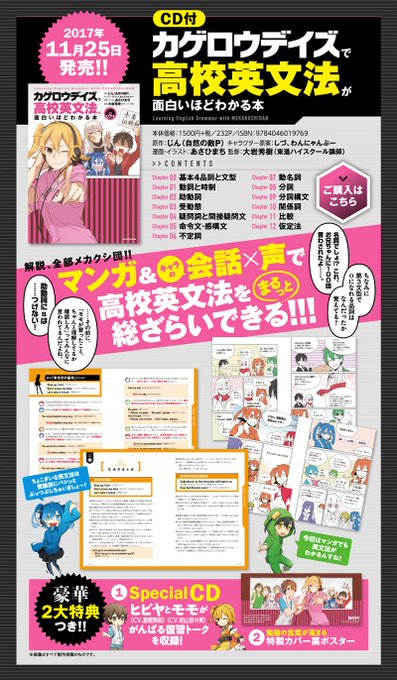 メカクシ団 11月26 金 から全国アニメイト 通販にてアニメイトフェア開催 書籍情報 カゲロウプロジェクト 学習 参考書シリーズの最新刊 高校英文法が面白いほどわかる本 が本日より各書店にて発売開始 カゲプロ参考書シリーズ初となる 団員ヒビヤ